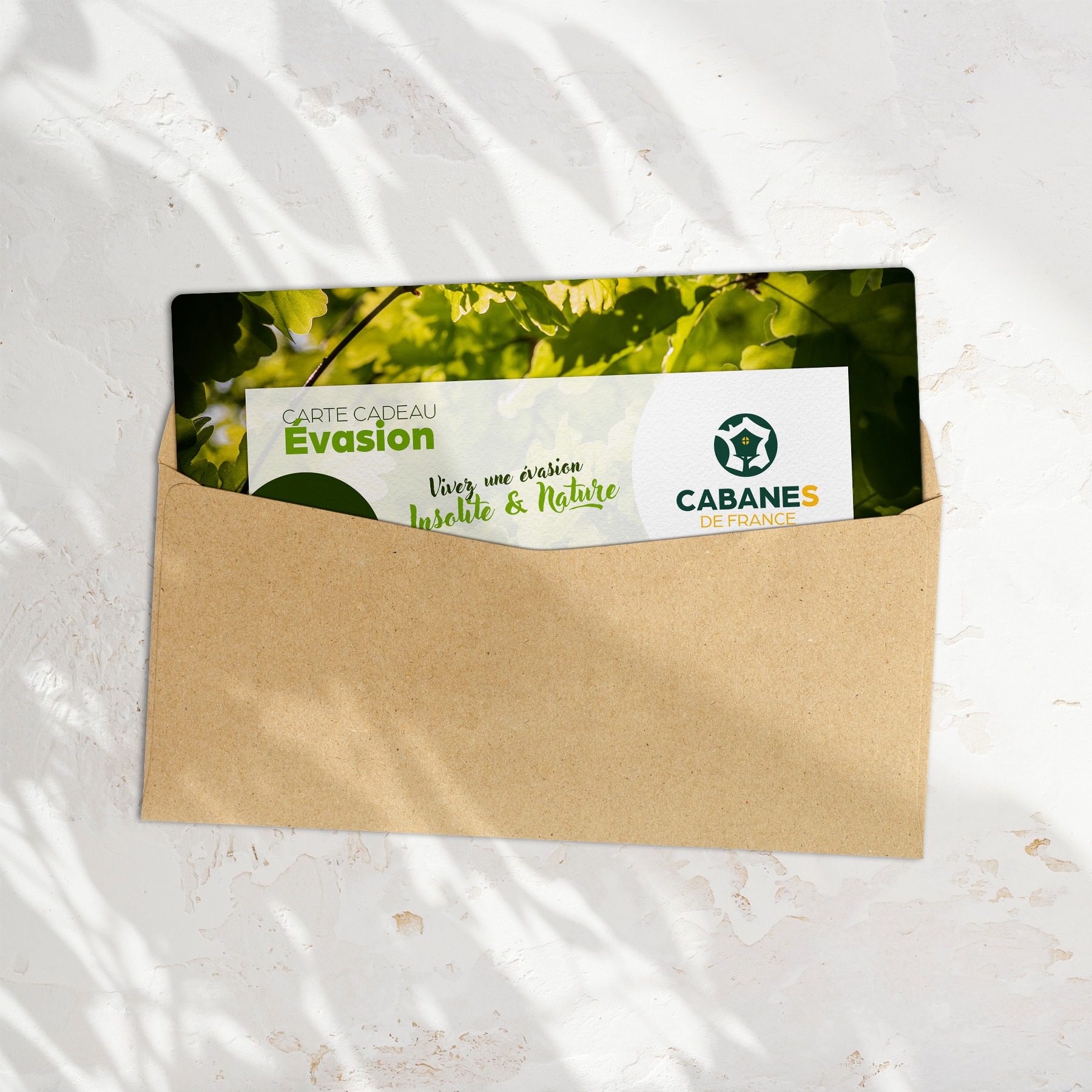 Grâce à la Carte Cadeau Évasion, vos proches ou vous-même pourrez choisir la date et le lieu d’un séjour et payer pour tout ou partie d’un hébergement et de prestations chez un partenaire Cabanes de France.