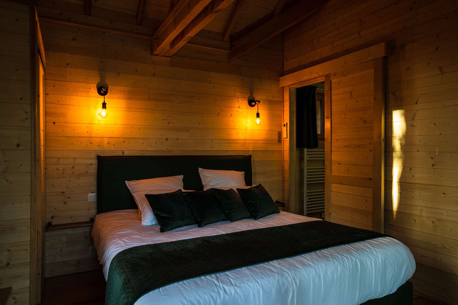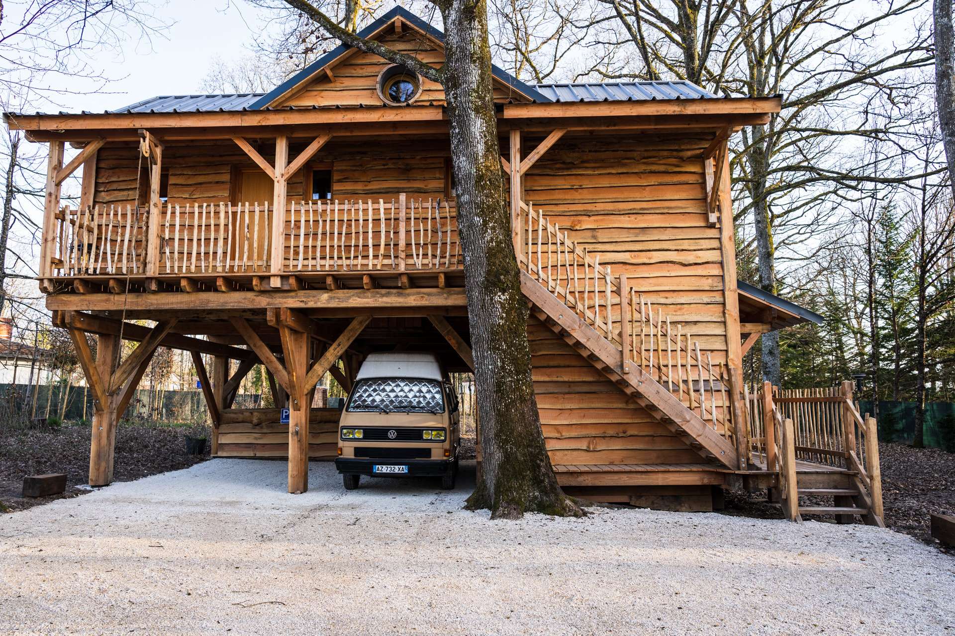 Cabane en bois sur pilotis avec jacuzzi et sauna