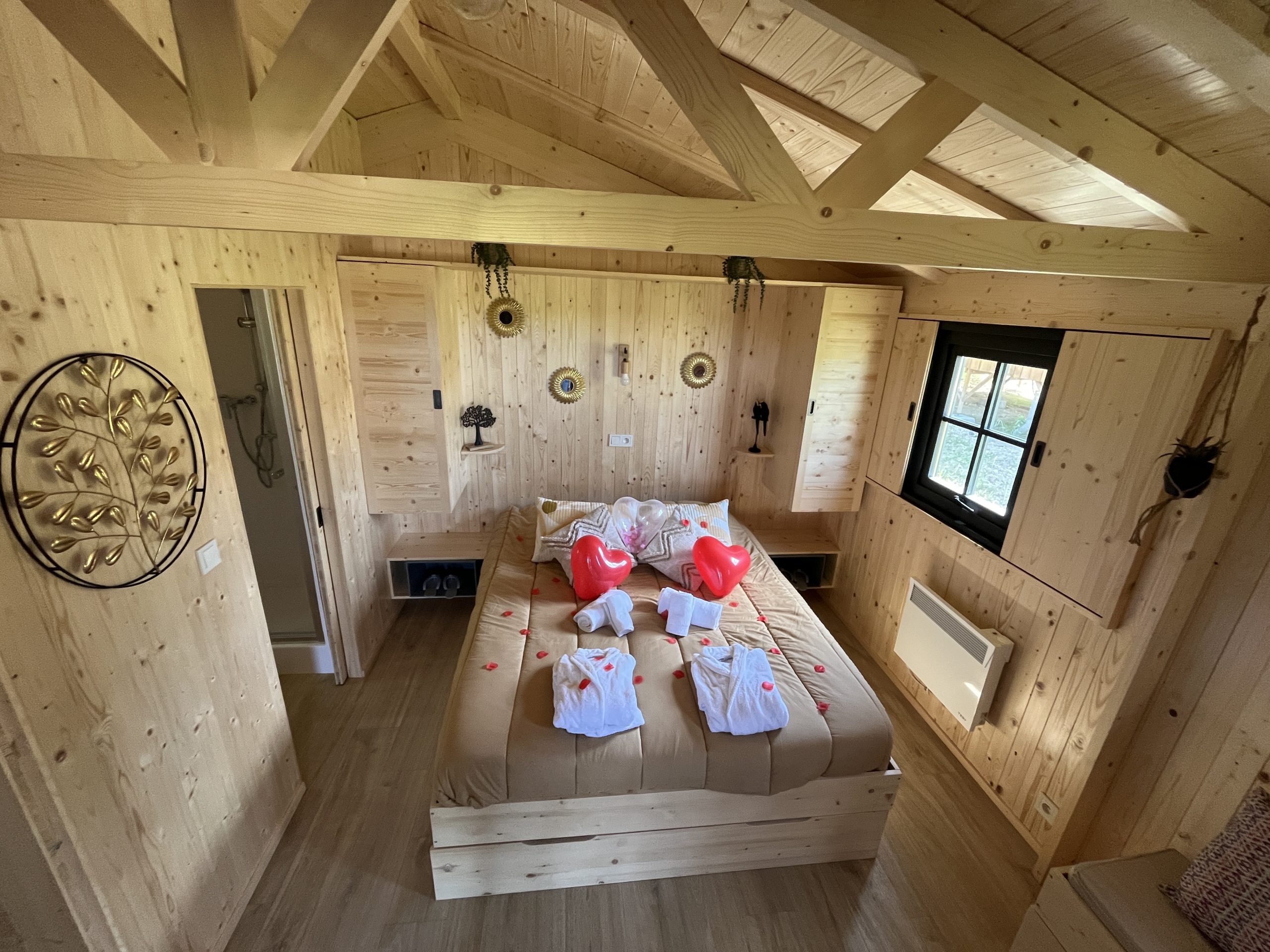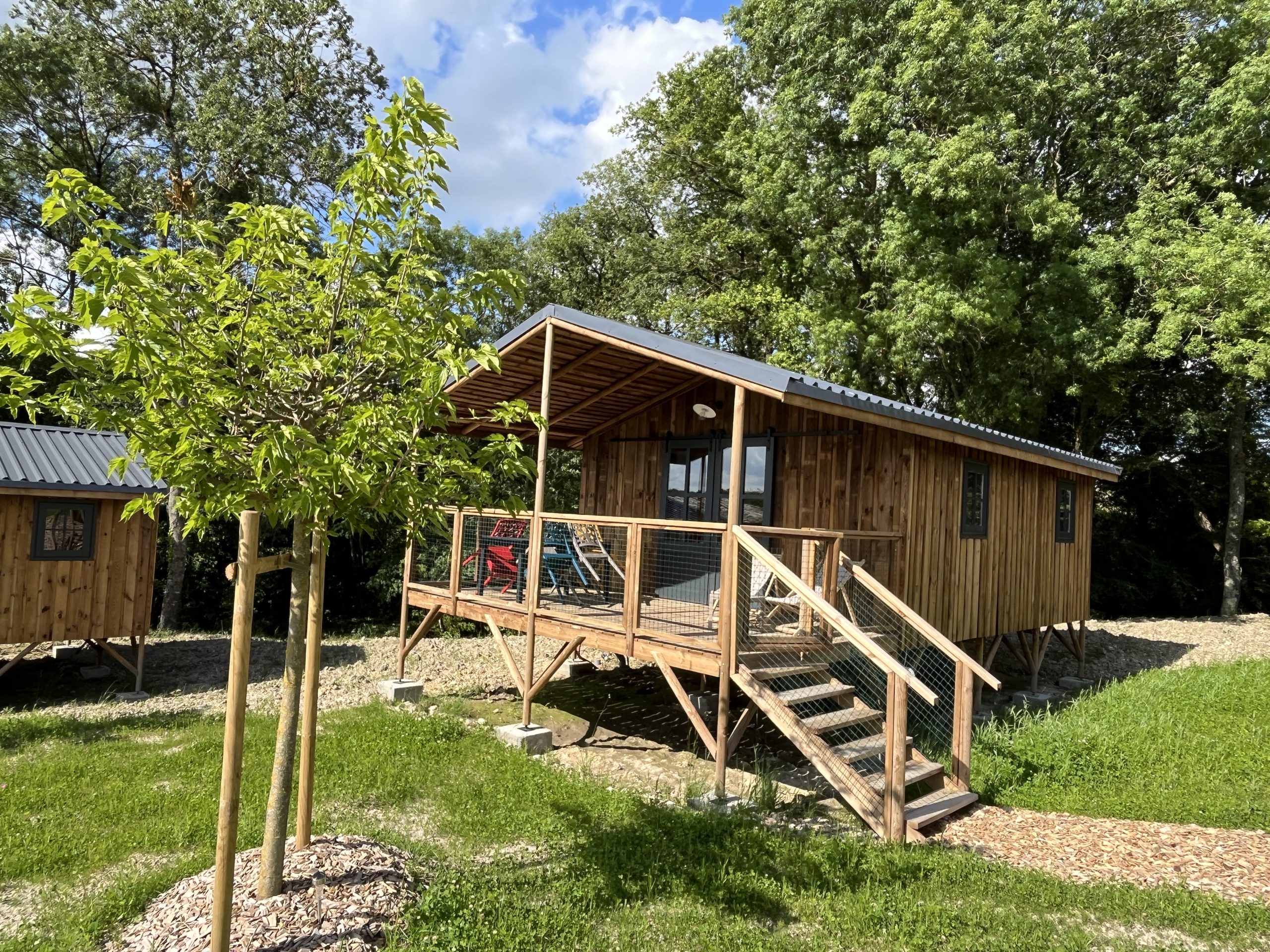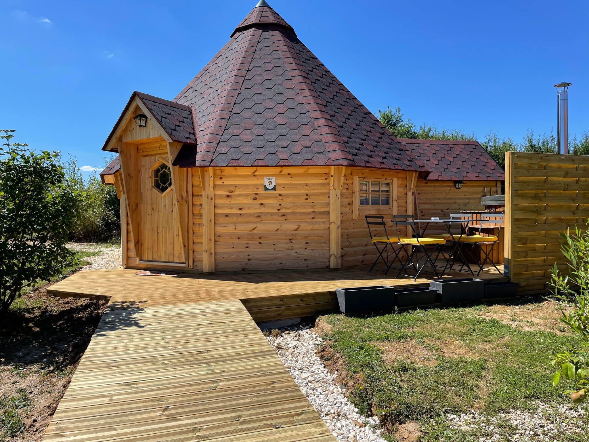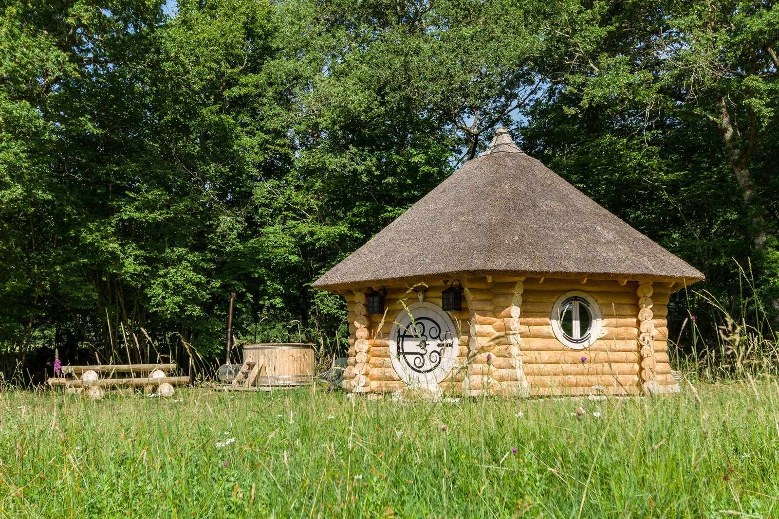 Cabane en bois sur pilotis avec jacuzzi et sauna