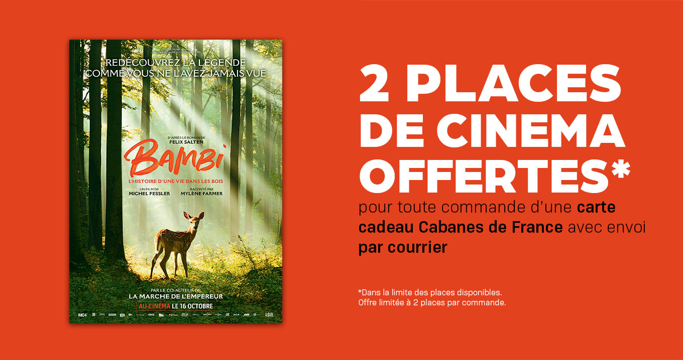 Cabanes de France s’associe à la sortie de ce film en vous offrant 2 places pour toute commande d’une carte cadeau avec envoi par courrier sur la boutique en ligne Cabanes de France
